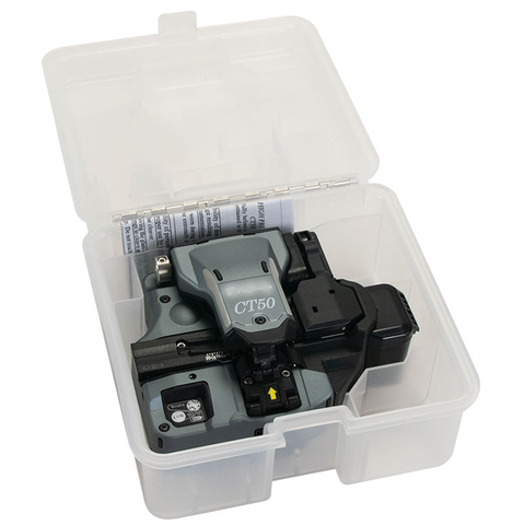 La Cortadora CT50 ofrece una mayor resistencia al impacto de caídas en comparación con otras cortadoras existentes y permite a los trabajadores reemplazar la cuchilla cortadora, proporcionando a los clientes una reducción drástica en tiempo de manejo y costos de mantenimiento. El CT50 cambia la posición de la hoja de corte automáticamente y de acuerdo con la condición del estado de corte de las fibras ópticas en una empalmadora de fusión a través de comunicación inalámbrica. Además, el CT50 puede completar trabajos de corte, incluida la recolección de chatarra, con un solo paso.